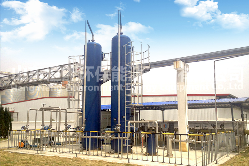 沼氣中含有大量的粉塵、污泥、水分、雜質及毒害性氣體(如HCl,H2S,NH3),為達到設備利用要求或環保排放標準,需要對原料氣中的氣體進行預處理,如增壓、脫硫、脫水、除塵等。
